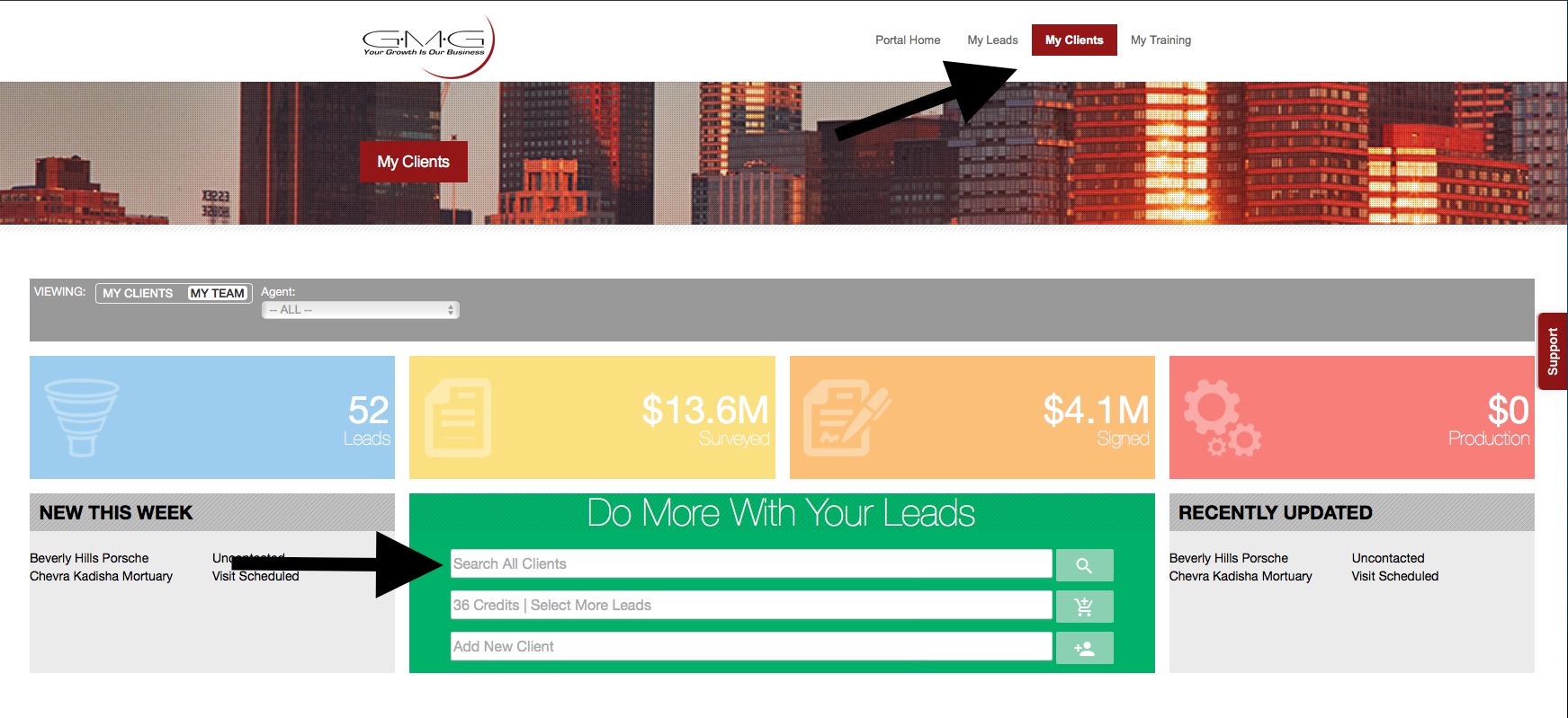 Step 2 - Go to the My Clients Tab (upper right corner of the home page)